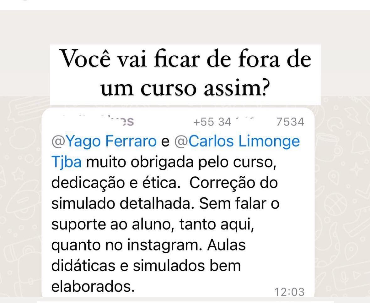 O Professor Yago Ferraro é Juiz de Direito (TJBA) e um apaixonado pela docência e pelo estudo da dosimetria da pena e da sentença penal. É autor da obra Manual de Sentença Penal (JusPodivm, 2024). Foi nomeado Promotor de Justiça do Ministério Público do Estado de São Paulo (93MPSP).